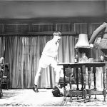 - The set was huge as we performed on the College stage. It included a staircase, and there was plenty of exercise for the cast who in typical farce style had to chase each other around the set. The newel post at the bottom of the stairs was made by Clare’s dad and is still used by BCP to this day!